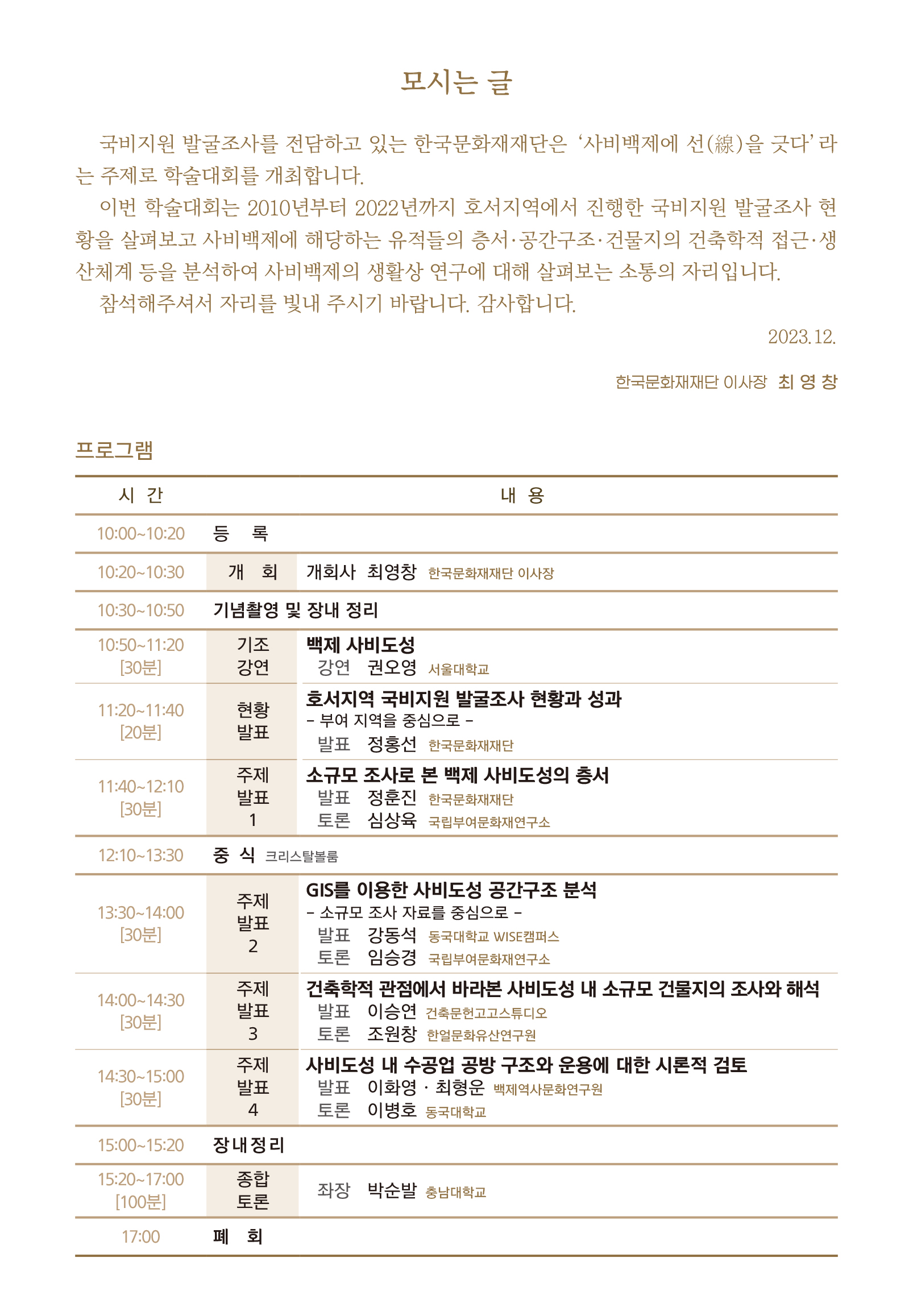 2023년 국비지원 발굴조사 학술대회 개최(사비백제에 선을 긋다)